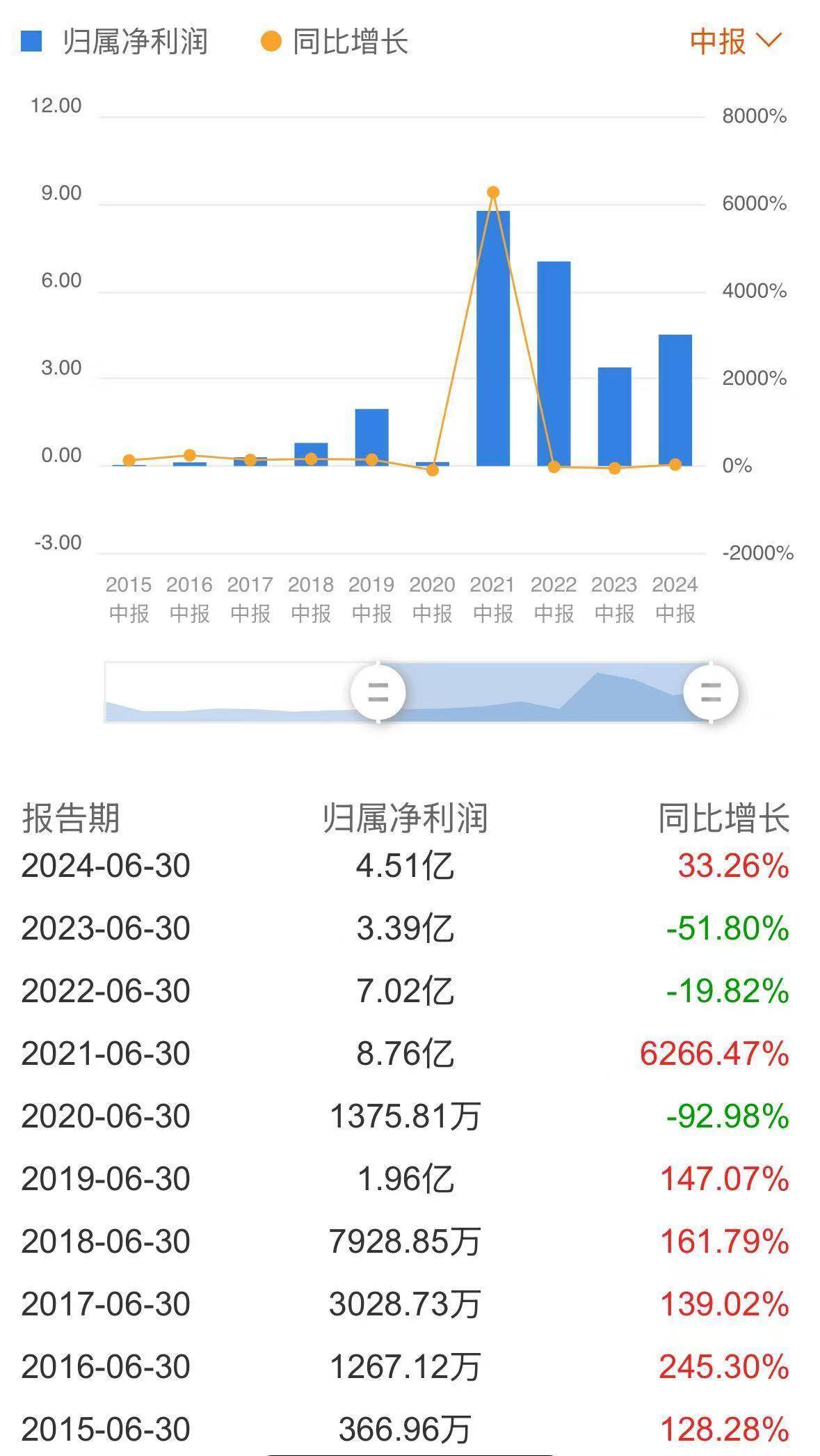 从华昌化工历年同期的净利表现看,近年都有数亿的盈利,而800万元的半年度净利仅超过2015年同期。